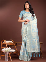 Embrace timeless charm and breathable elegance with this Sky Blue cotton saree, beautifully adorned with golden zari motifs and a detailed pallu. Crafted for comfort and sophistication, this saree is perfect for both daily elegance and light festive wear. Its soothing pastel tone and rich texture make it a wardrobe essential for the woman who loves grace with simplicity.