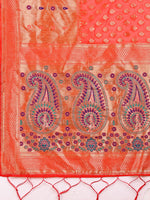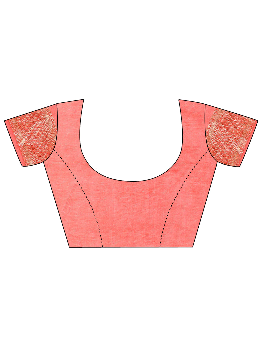 Wrap yourself in tradition and trend with this timeless Peach and beige linen cotton saree, enriched with royal paisley motifs and golden zari accents. Light in feel and grand in look, it's the perfect fusion of comfort and sophistication.