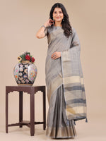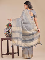 Astita Grey Organza Woven Zari Work Traditional Tassel Saree