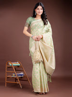 Astita Light Green Linen Cotton Woven Zari Work Traditional Tassel Saree - Default Title