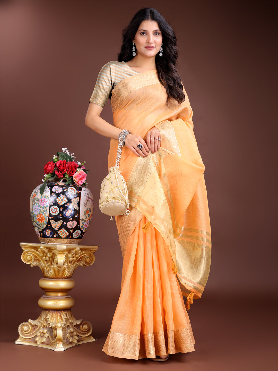 Astita Orange Cotton Woven Zari Work Traditional Tassel Saree - Distacart