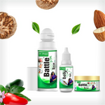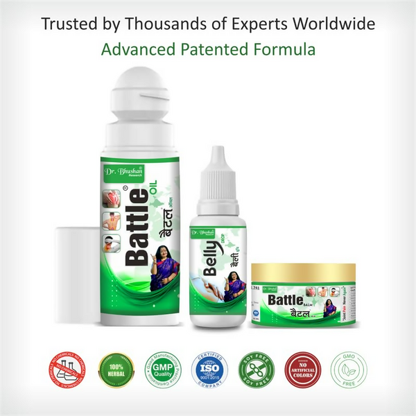 Dr. Bhushan’s Research Ayurvedic Joint Trio Kit is a curated combination of three Ayurvedic formulations: Battle Balm, Battle Oil, and Belly Drops. These are made using traditionally known plant-based ingredients and oils, often used in wellness routines.