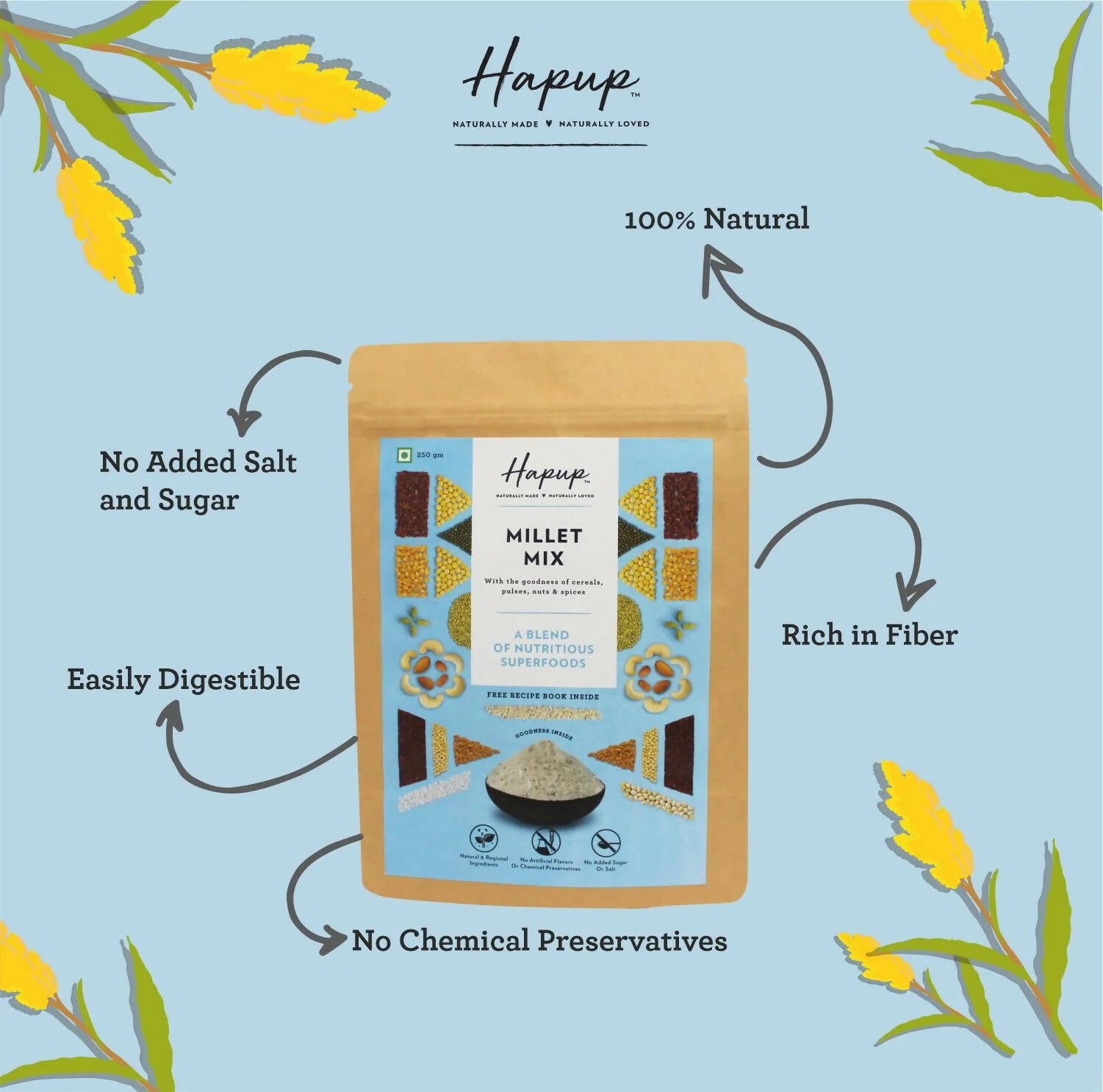 Hapup Millet MixAbout the Product: Hapup Mixes are made using only regional ingredients. It is a nutritious mix of 15 super ingredients essential f...
