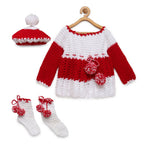 ChutPut Hand knitted Floral Crochet Wool Dress For Baby Girls - Red