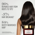• This deeply reparative hair mask works to replenish hair fibre, reduce breakage, and restore lost vitality. With regular use, it helps strengthen weak strands, improve resilience, and boost shine, leaving hair softer, silkier, and visibly healthier. The creamy, luxurious texture wraps each strand in nourishment, promoting smoother, more manageable hair.