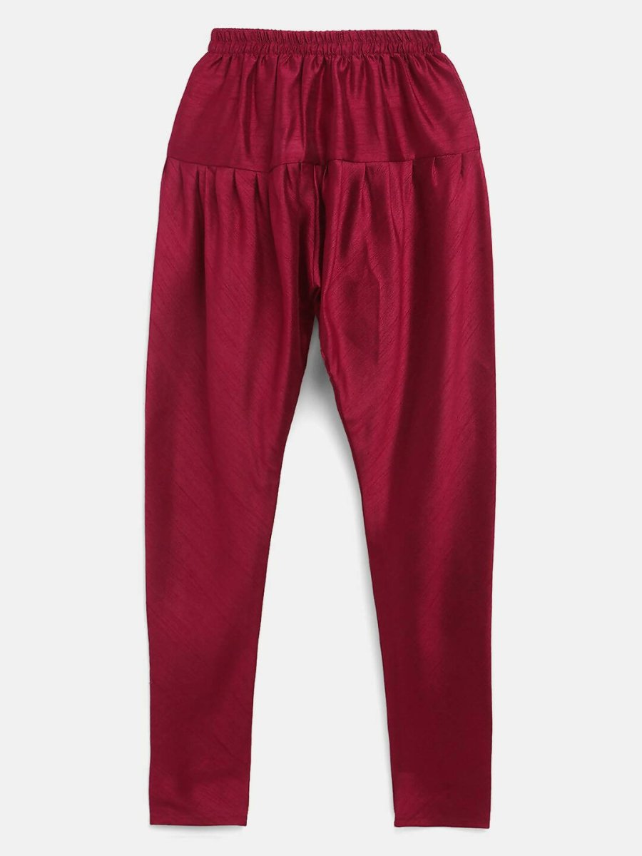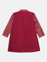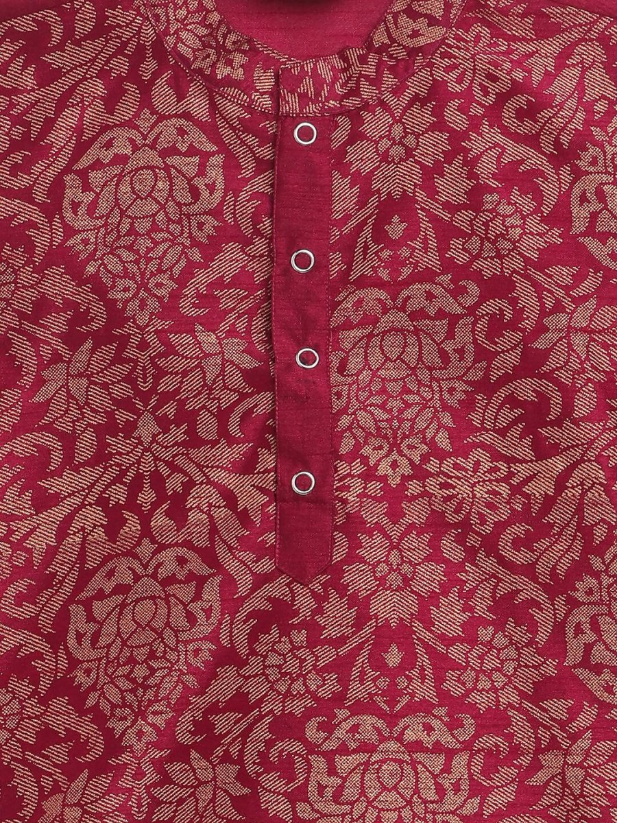 Put forward your son's best traditional look by choosing this kurta Churidar set for boys from Ahalyaa. Tailored with excellent quality fabric this outfit is bound to impress everyone around you. A fantabulous look is displayed in our Self Designed kurta. Decorated with gold ring snap buttons & Gold Print work. it will make you look extremely cute. This gives your child’s entire look a classy appeal. This readymade kids' attire is perfect for festive & Party use.