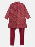 Ahalyaa Purple Poly Silk Gold Print Kids Kurta Churidar Set For Boys