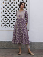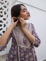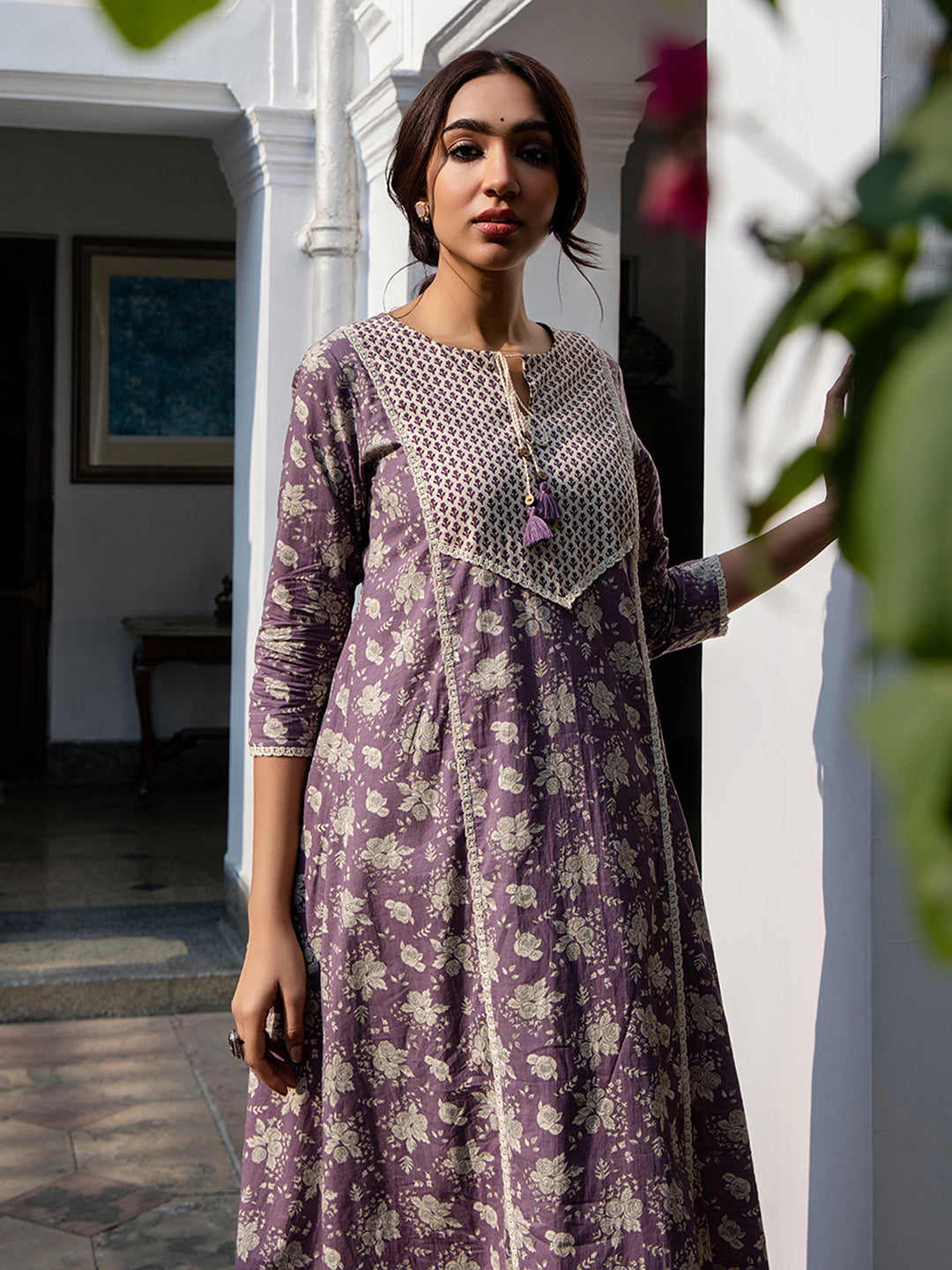 Janasya Purple Cambric Floral Kurta Set - Distacart