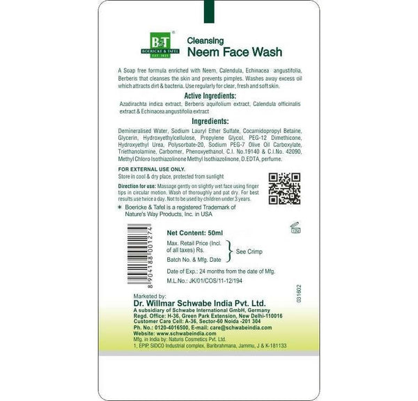 Boericke & Tafel Cleansing Neem Face Wash - 50 ml