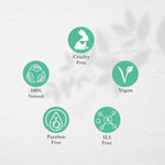 Tea Tree extract, Aloe Vera extract, Herbal extracts (of Brahmi, Bringraj, Amla, Gudhal), Aqua, Fruit Extract, Essential Oils.