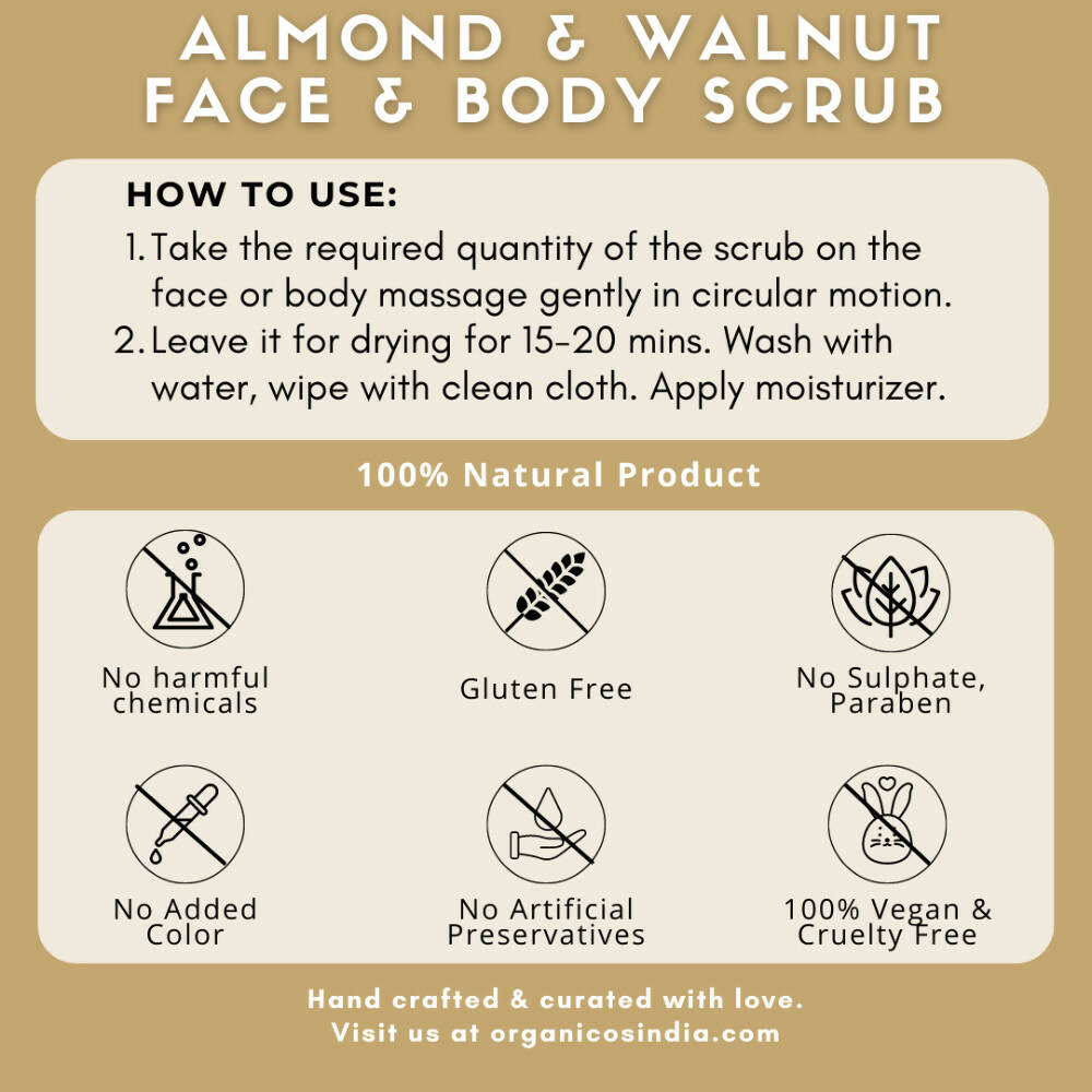 Organicos Almond+Walnut Face & Body Scrub - 150 gm