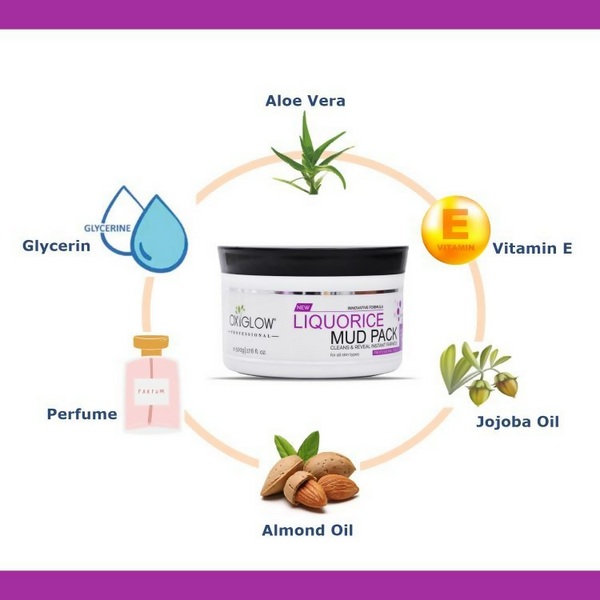 • OxyGlow Liquorice Mud Pack is enriched with natural extracts to help reduce the dark spots and remove dirt and grime from the face. Liquorice as an essential ingredient helps to treat hyperpigmentation, sun damage, fade dark scars, fight wrinkles and other skin problems to give you an even skin tone. Aloe vera is among the succulent plant species. A natural elixir for youthful skin. Aloe vera extracts in this mud pack act as a natural moisturizer with antibacterial, anti-inflammatory, anti-oxidative benefits. It naturally protects skin cells from environmental damage and reduces sunburn and help heal wounds. This mud pack is very effective in reducing oil secretion for natural radiance and brighter skin complexion.