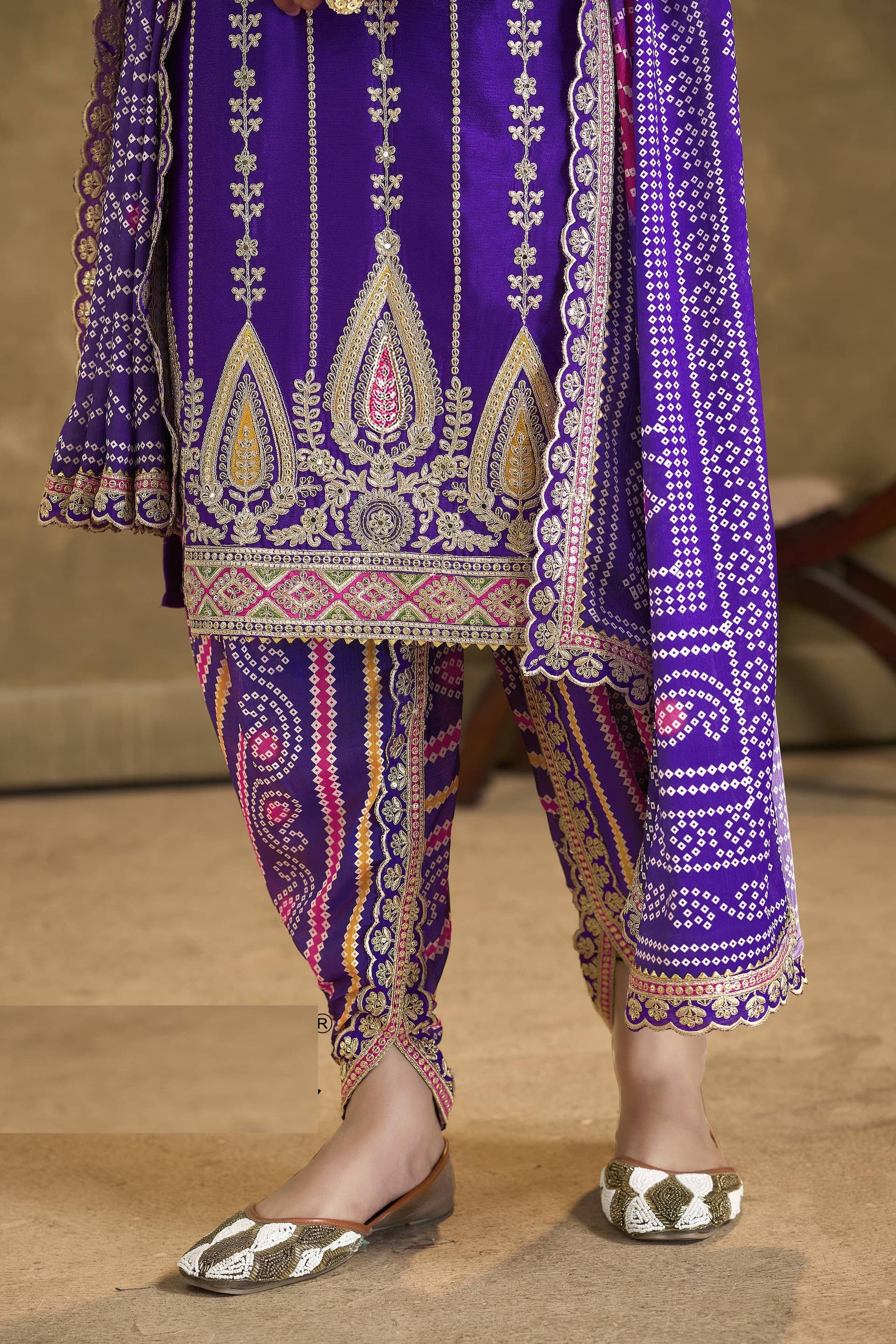 Aarshi Fashions Blue Embroidered Bandhani Dhoti Wedding Suit