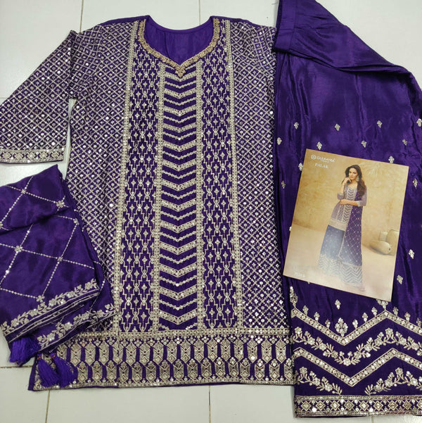 Aarshi Fashions Indigo Blue Palazzo Wedding SuitProduct Details Package Details : 1 Top::1 Bottom::1 Dupatta Kameez Length : 44 Color: Indigo F...