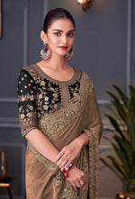 Be the sunshine of everybody’s eyes dressed in such a beautiful light brown silk blend wedding saree. This attire is displaying some really mesmerizing and creative patterns embroidered with border, cutwork, embroidered and zari work. Comes with matching blouse. (Slight variation in color, fabric & work is possible. Model images are only representative.)Legal Disclaimer :Product color may slightly vary due to photographic lighting sources or your monitor settings.