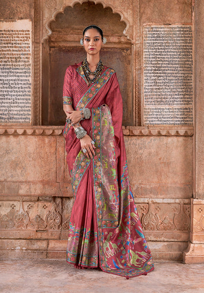 Monjolika Fashion Maroon Printed Silk Contemporary Saree