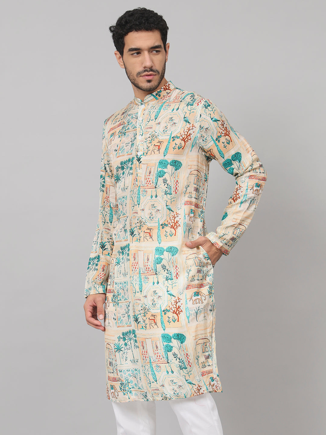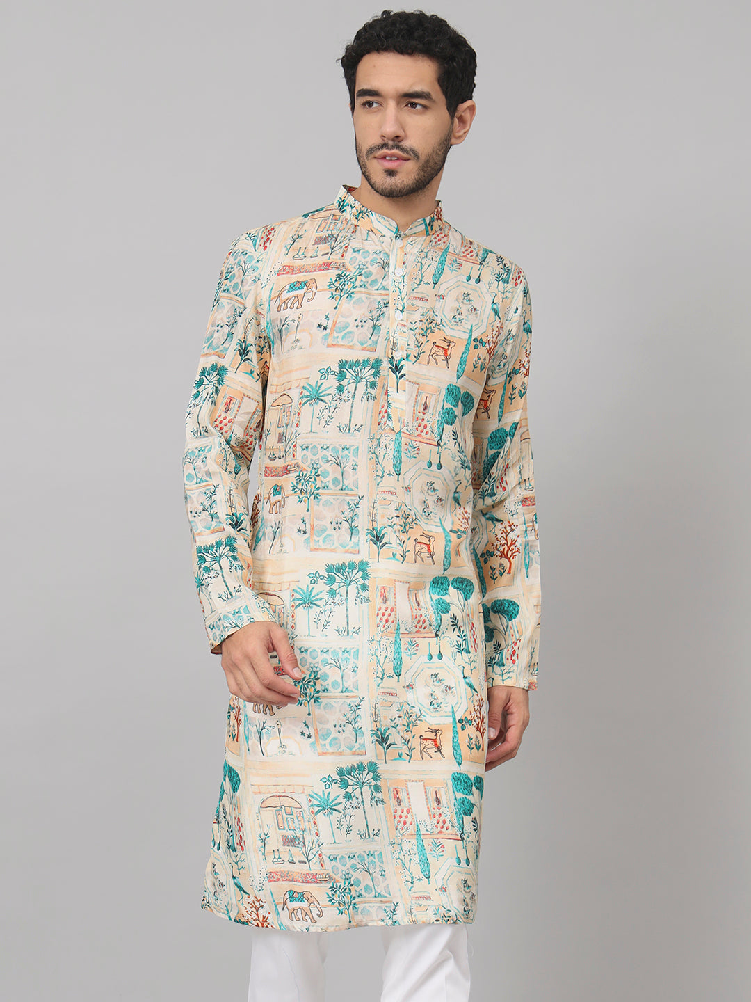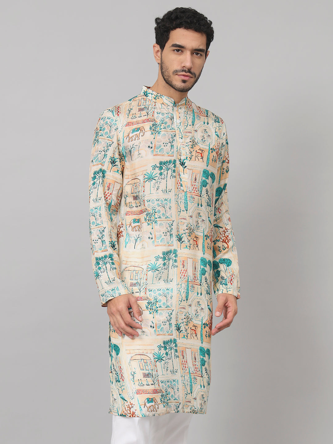 Classic Forest Print Silk Kurta by Hilo Design - Distacart