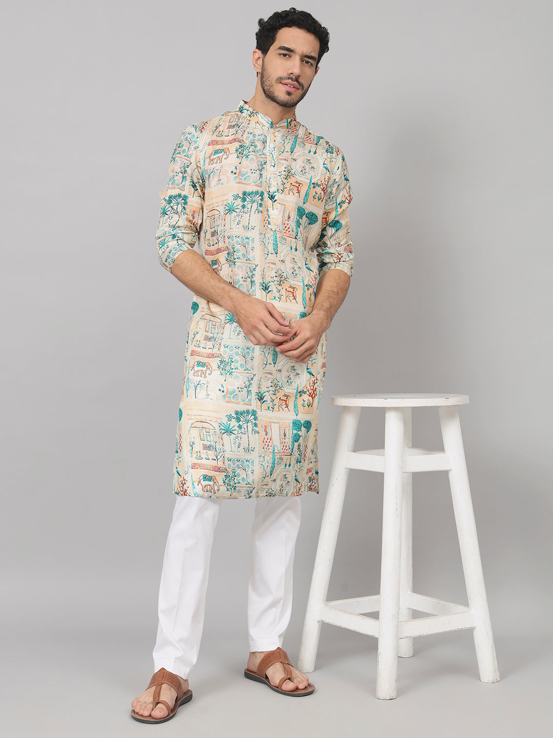 Elevate your wardrobe with our Classic Forest Print Silk Kurta, a luxurious fusion of elegance and nature-inspired design. Crafted from premium silk fabric, known for its quality and fine texture & is valued for its smoothness, durability, and sheen. This kurta boasts an intricate forest-themed print, showcasing the timeless beauty of nature's lush foliage and serene landscapes. The smooth and lightweight silk offers a comfortable fit and a graceful drape, perfect for both formal gatherings and special occasions. Embrace sophistication and the allure of the outdoors with this statement piece that embodies refined style and natural charm.