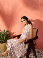 InWeave Mauve Ethnic Window Floral Short Palazzo Kurta Set - S