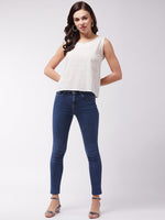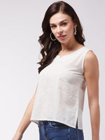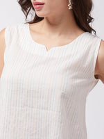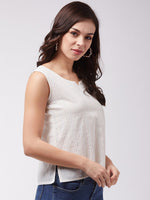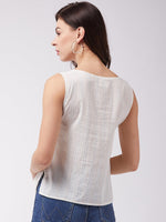 Catch out this off white coloured kantha top from InWeave. This blouse features sleeveless style, designer neckline and Kantha work pattern.
