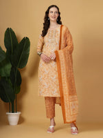Yufta Peach Pure Cotton Kurta Dupatta Pant Set