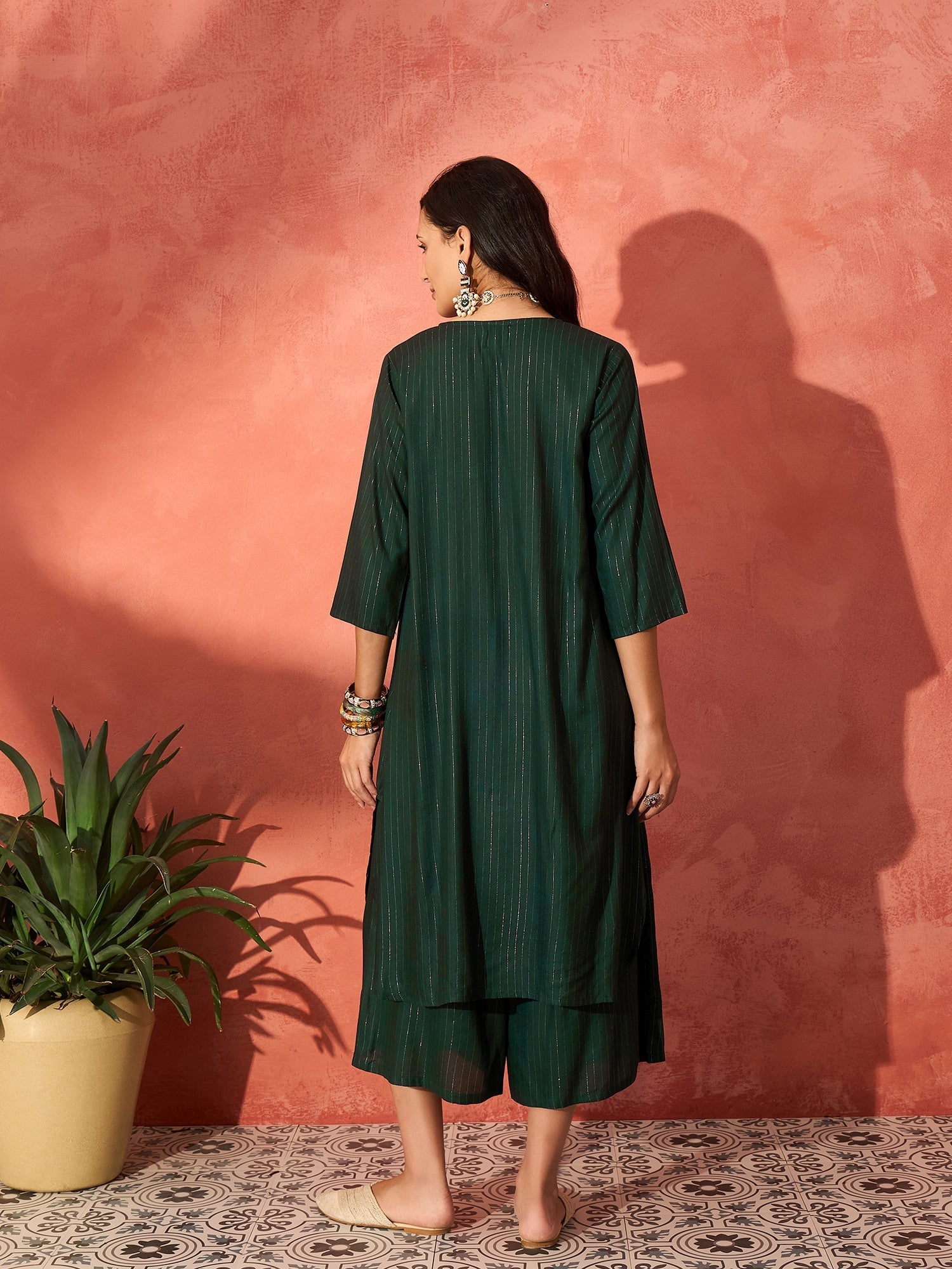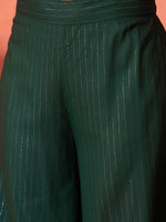 InWeave Pine Green Lurex Flared V Neck Kurta Palazzo Set
