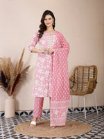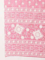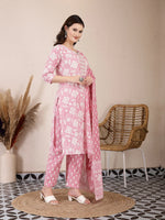 Pink Ethnic motifs Print Straight kurta Trouser Dupatta Set,