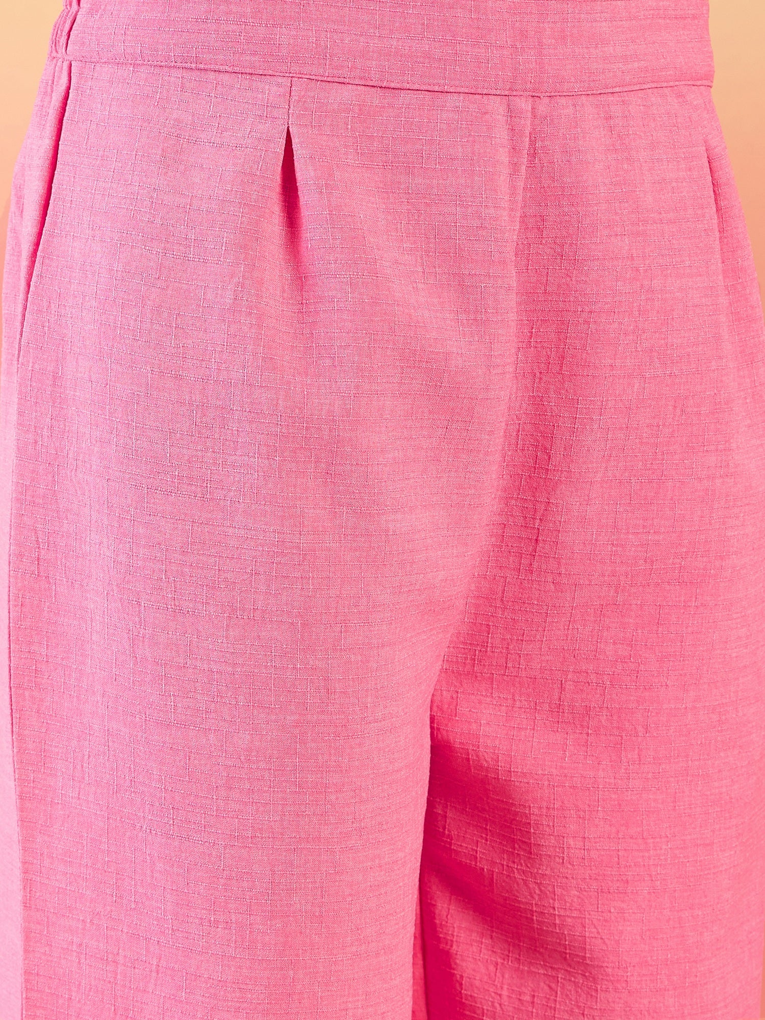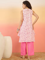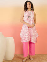 The Pink White Rubber R Neck Kurta Set is a charming and elegant ensemble that blends traditional patterns with modern simplicity. Designed in a soft pink hue with white rubber prints, this set exudes a graceful yet contemporary vibe.