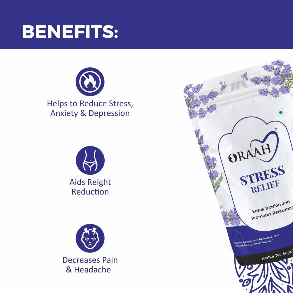 Oraah Stress Relief TeaIngredients: Ashwagandha, Lavender, LicoriceDirections For Use: Heat filtered boiled water Add 1-2 Tablespoons of tea. Steep...