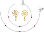 AanyaCentric Stylish Silver Plated Anklet & Gold-Polished American Diamond Earring Combo for Girls & Women