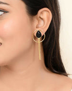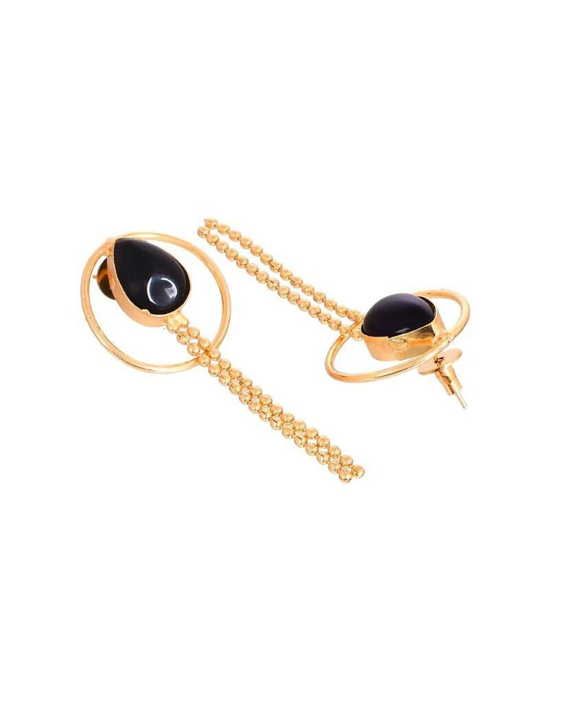 VOJ One Gram Gold-Polished Drop Shaped Black Stone Studded Earrings