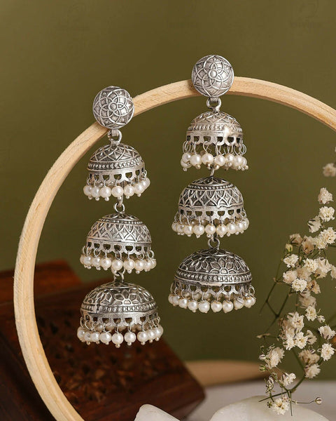 Joban Fashion Maithili Jhumki Earrings Color : Silver Base Material : Brass Remarks : Slight Color Variation possibleLegal Disclaimer :Product colo...