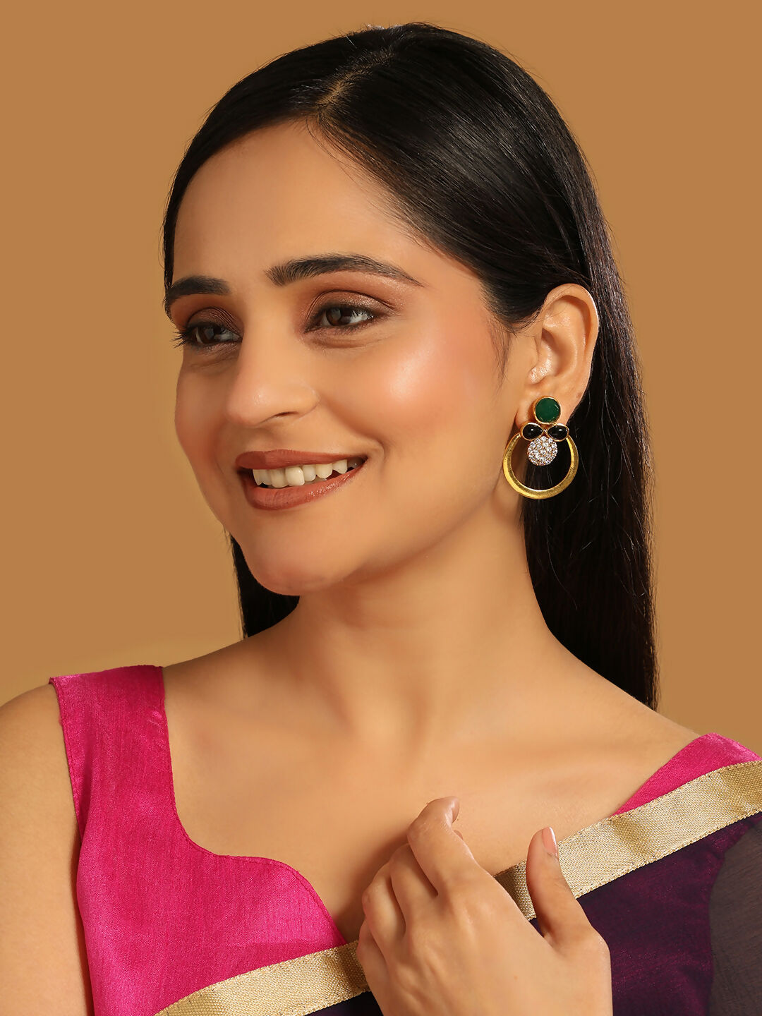 Nuyug 22K Gold Plated Cubic Zirconia Studded Contemporary Stone EarringsAbout the product:22 k Gold-toned contemporary stone earrings, gold-plated,...