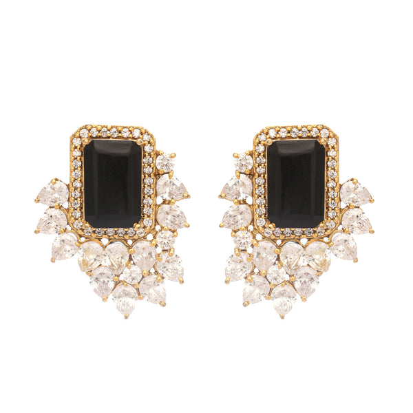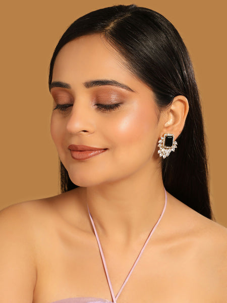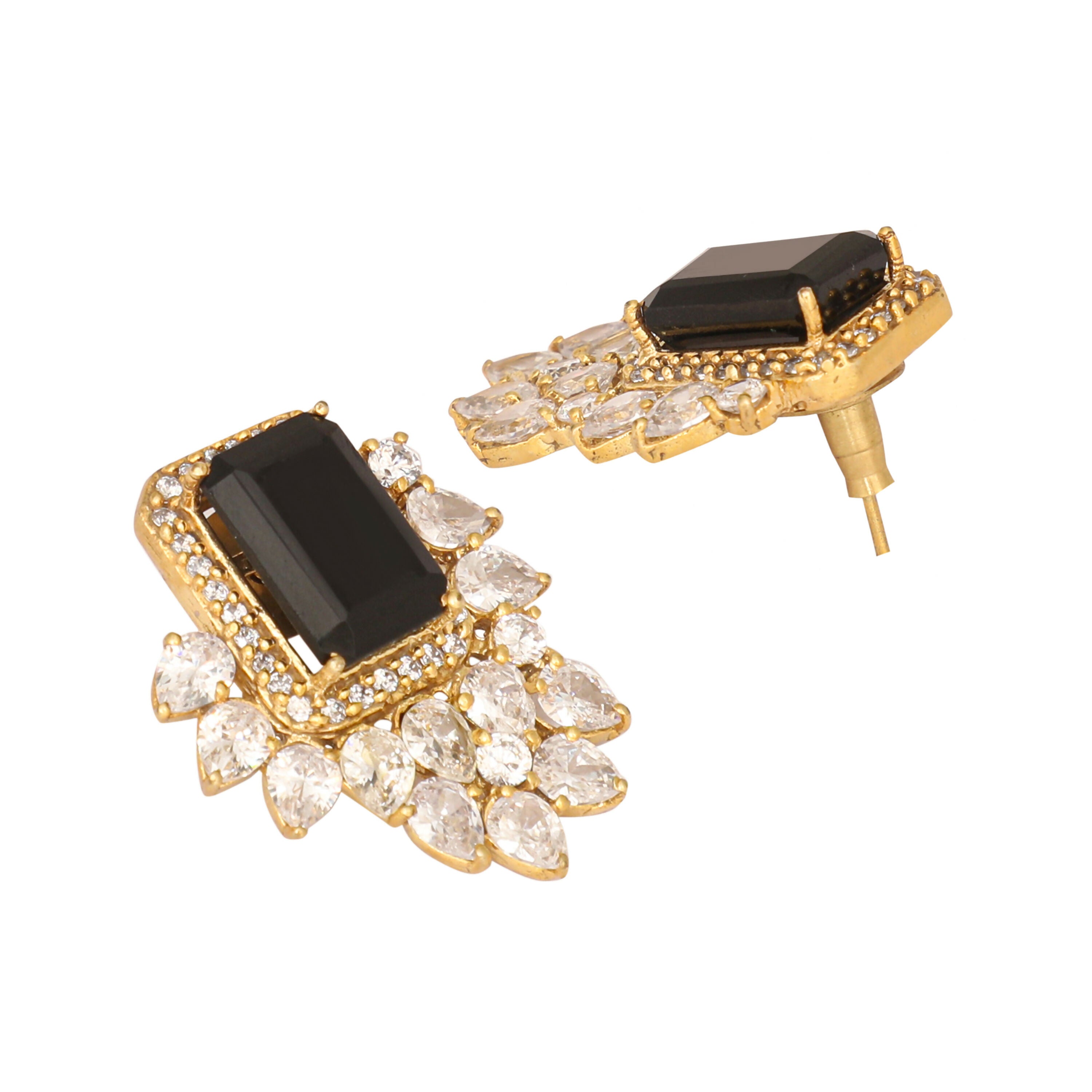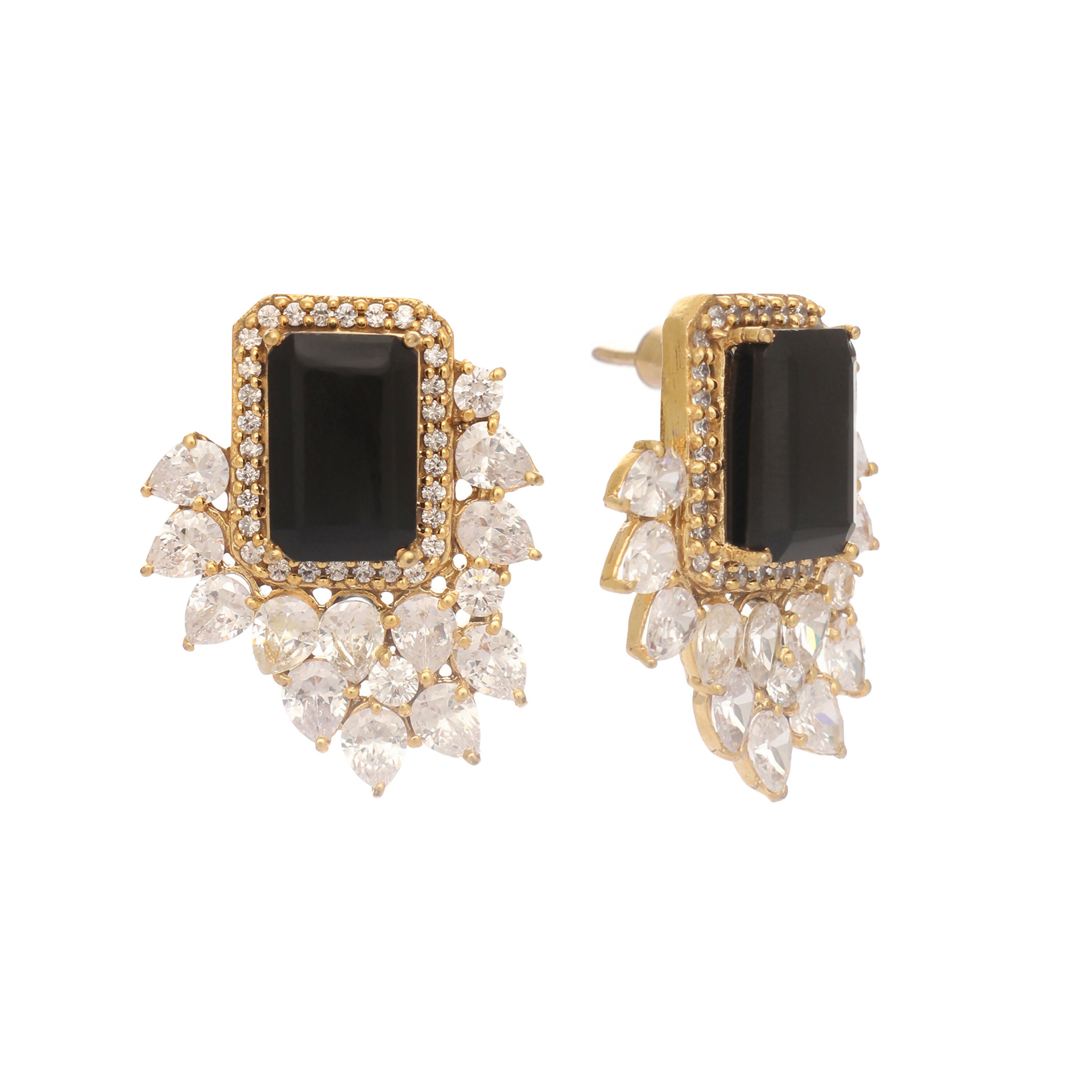 Nuyug 22K Gold Plated Noir Spark Contemporary Stud EarringsAbout the product:Black stone studs with diamonds, designed to exude timeless sophistica...