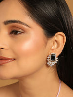 Black stone studs with diamonds, designed to exude timeless sophistication. Featuring a bold black stone in the center, these earrings are beautifully framed with diamonds adding a touch of luxury and sparkle. Secured with push back closure. This comes with anti-tarnish for lasting shine and comfort.