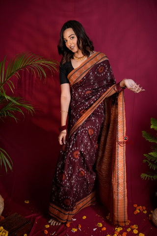khanduapata Maroon & Orange Colour Pasapali Border Body Design Cotton Saree For Women