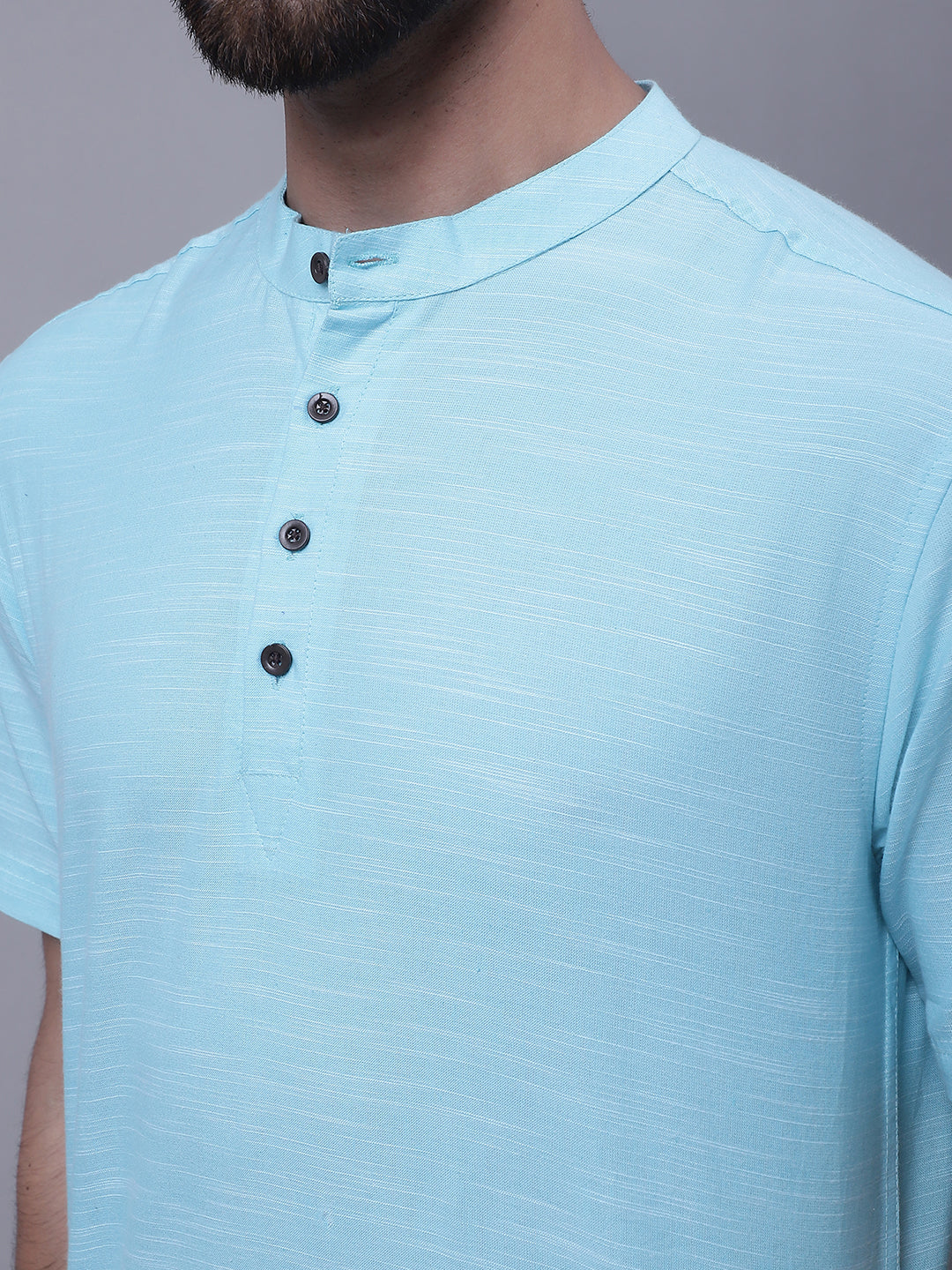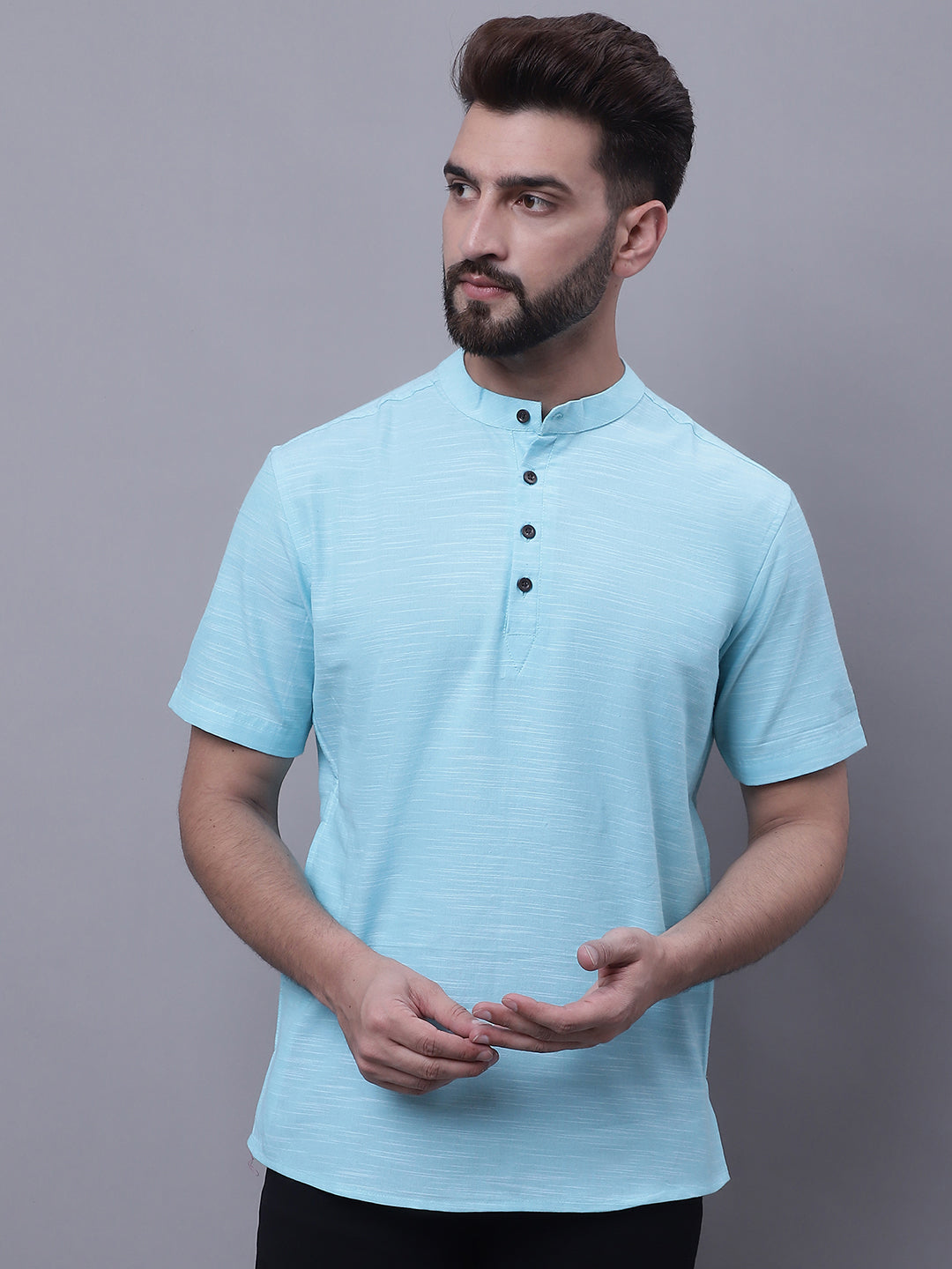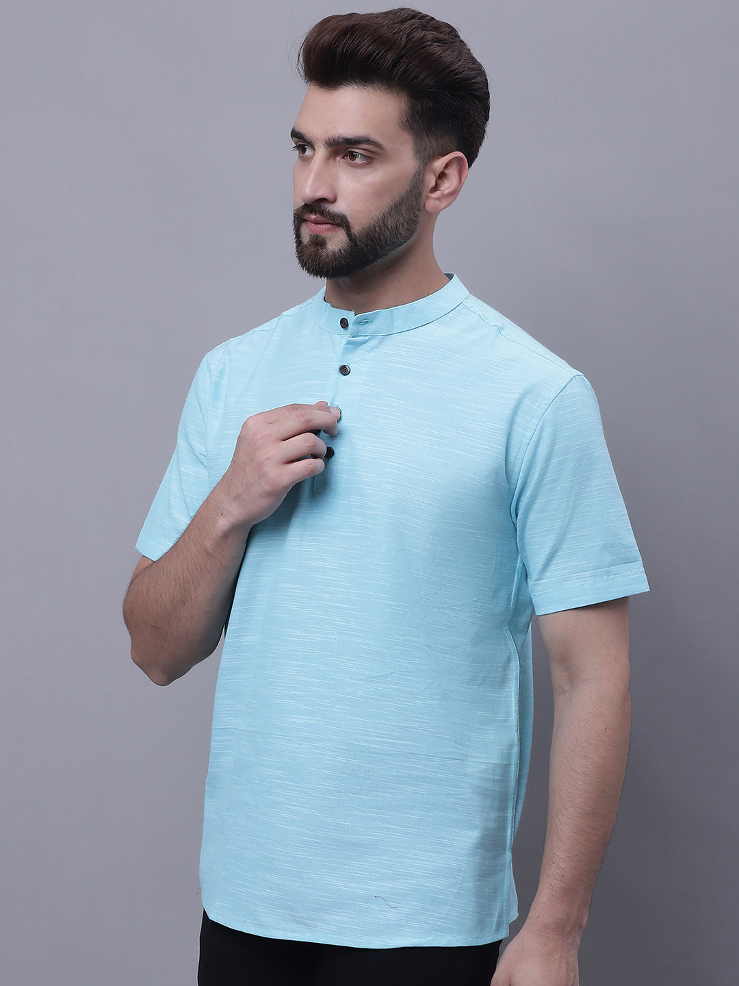 Pure cotton short kurta with band collar.