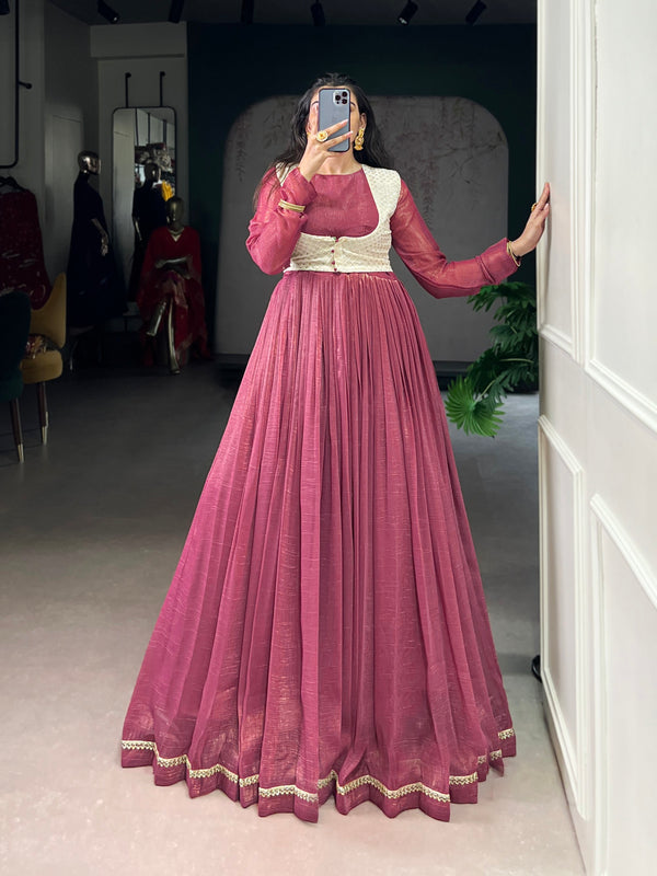 Lorenvalley Fashion Pink Silver Glosy Crunchy Lace Touch Up Gown with Koti