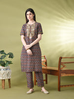Myshka Women's Cotton Printed Kurta Set With Dupatta - S