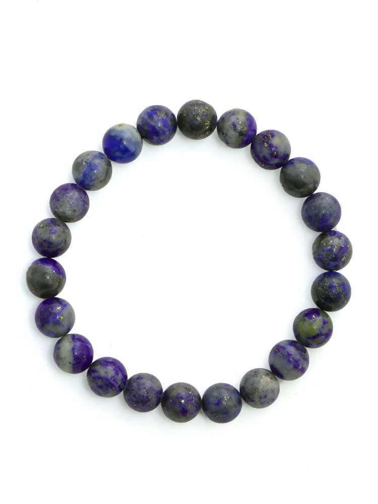 Experience timeless elegance with Ruby Raang’s Blue Toned Crystal Beads Bracelet, crafted from Lapis Lazuli stones. Celebrated for its deep celestial blue color and flecks of earthy tints, Lapis Lazuli symbolizes wisdom, truth, and inner harmony. The polished beads, strung on a durable elastic cord, provide a comfortable and flexible fit, making this bracelet perfect for everyday wear or layering. Its rich blue tones add a sophisticated yet natural touch to any outfit, blending classic beauty with spiritual depth. Style tip: Pair with white or gold accents to highlight the bracelet’s regal hues and timeless charm.