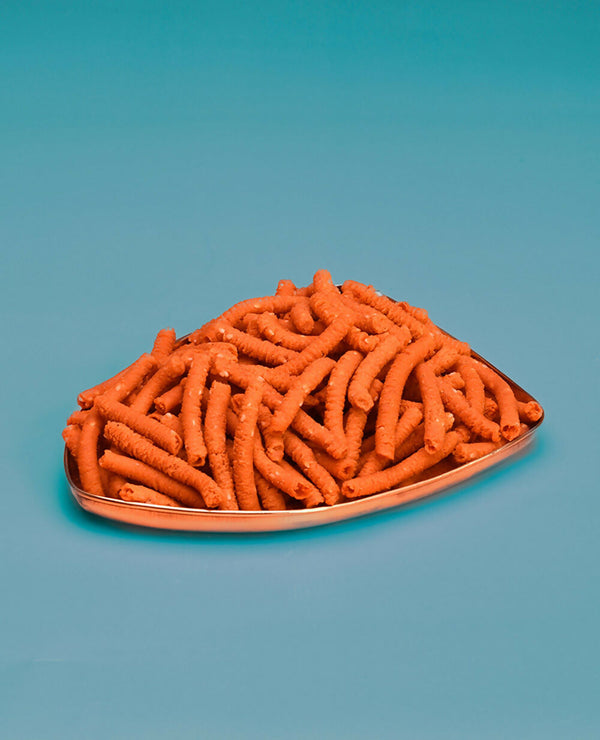 • Indulge in the timeless taste of Ellu Murukku, a crunchy and savory snack made with rice flour and infused with the rich, nutty flavour of sesame seeds. Perfect for festive occasions or as a delightful tea-time companion, this traditional South Indian delicacy is loved for its unique spiral shape, irresistible crispiness, and wholesome ingredients.