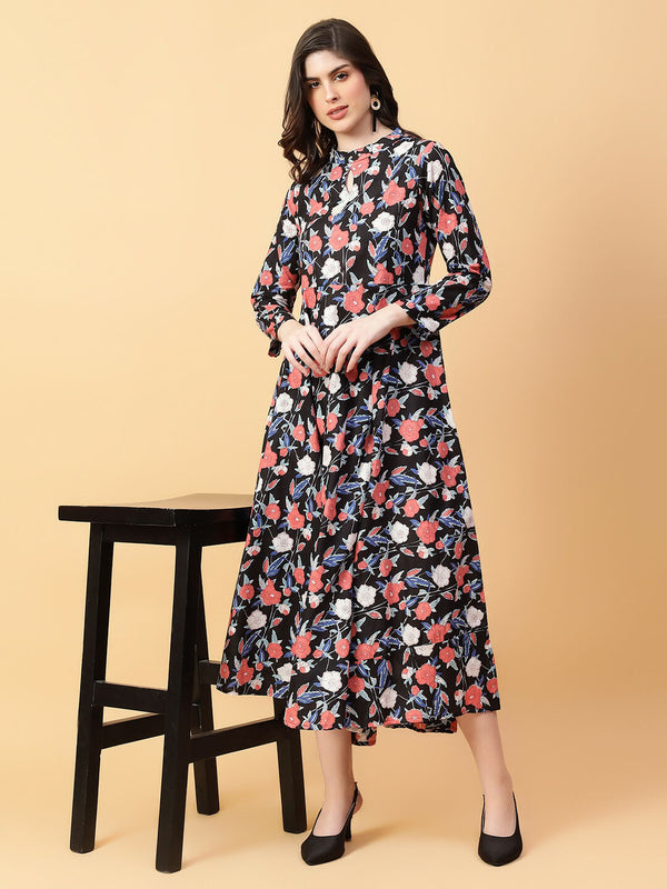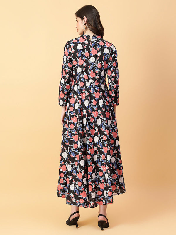 Joban Fashion Black Cotton Printed & Hand Work Dress