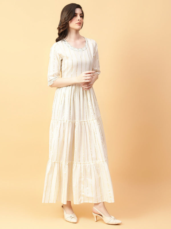 Joban Fashion Cream Cotton Lurx & Hand Work Dress
