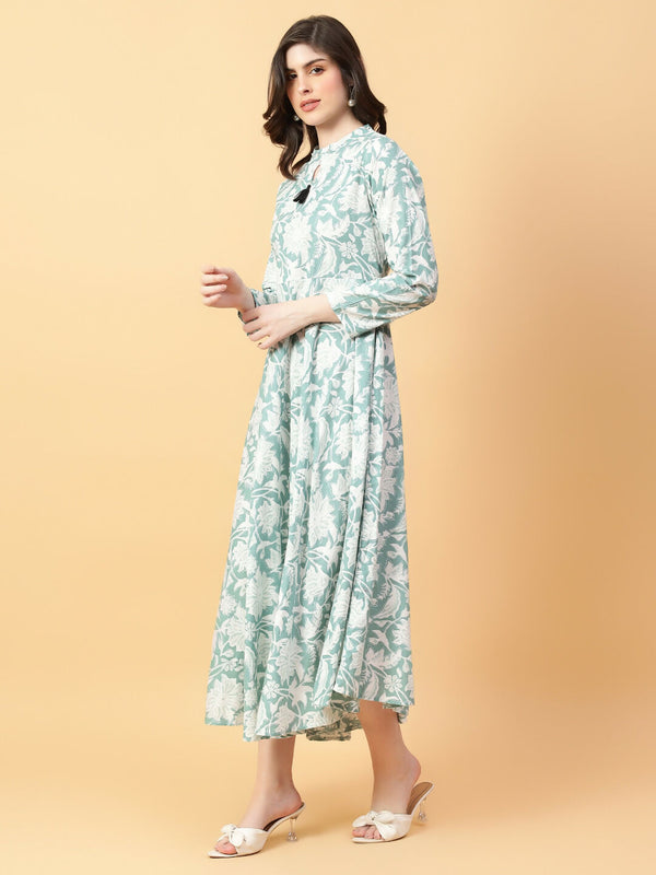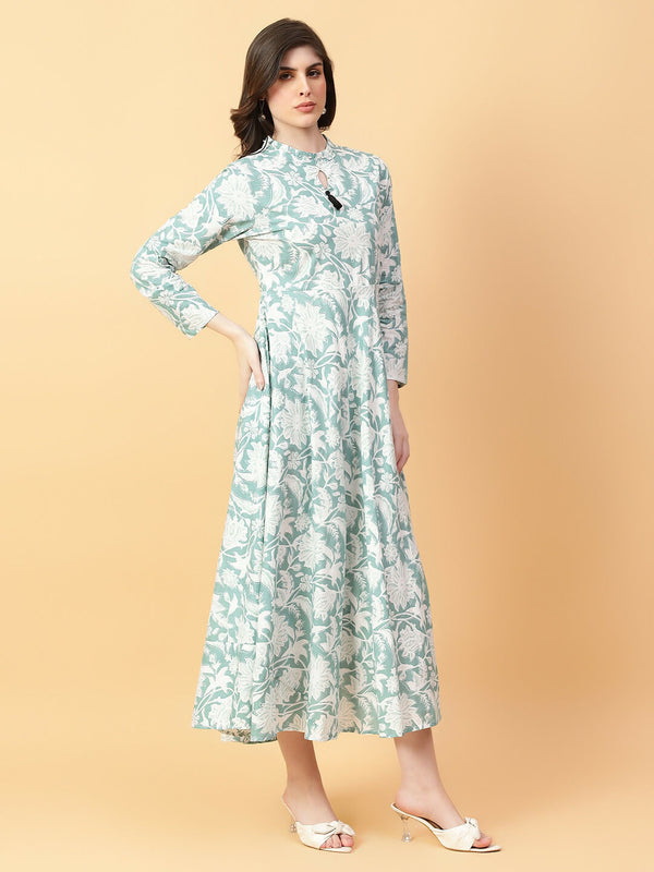 Joban Fashion Green Cotton Printed & Hand Work Dress - S