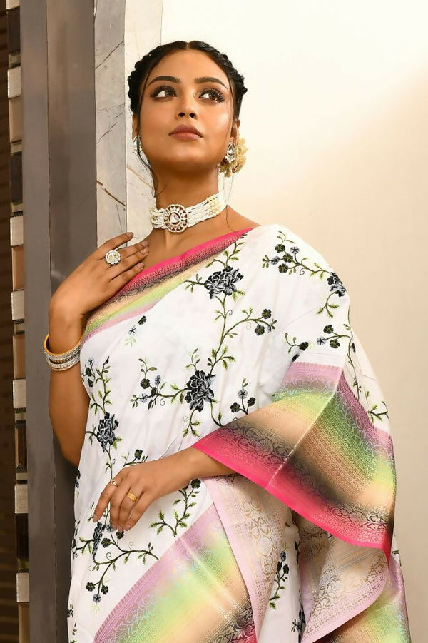 Joban Fashion Multicolor Saree Kataan Rainbow Digital Print With Embroidery