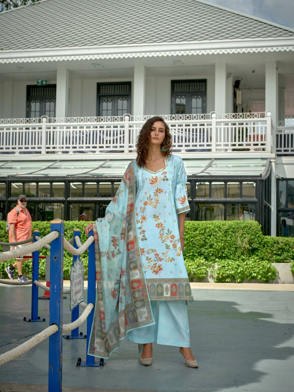 Joban Fashion Positive Sky Blue Digital Print With Position Foil Kurta Set
