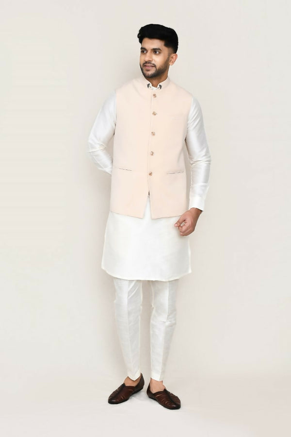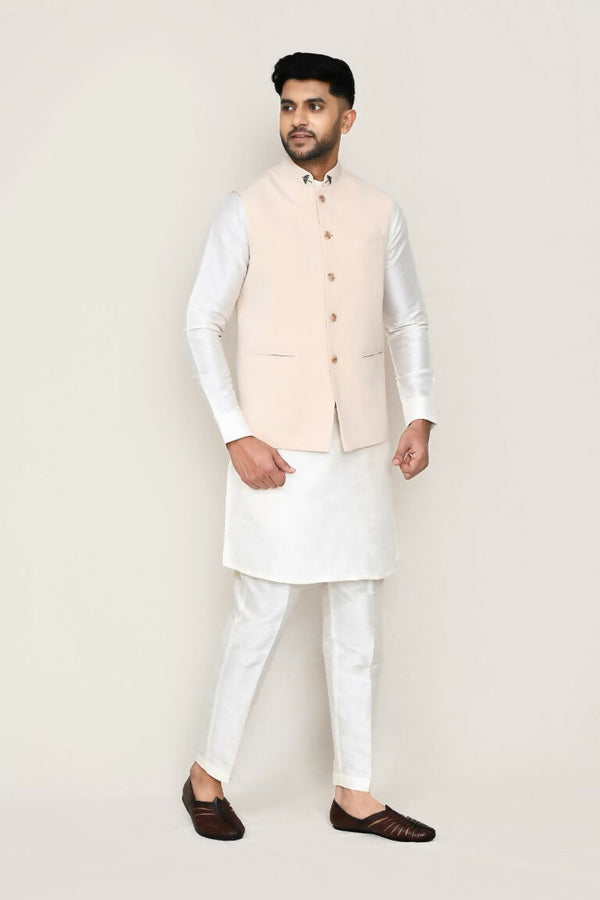 Joban Fashion White Colored Art Silk Fabric Kurta, Jacket With Straight Fit Pant