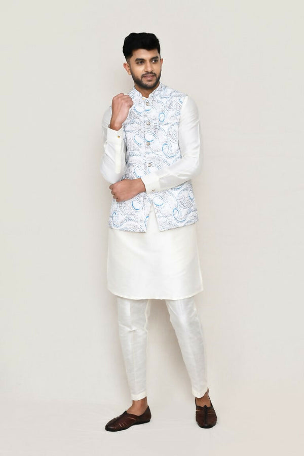 Joban Fashion White Colored Art Silk Fabric Kurta, Jacket With Straight Fit PantAbout the Product: No. of Components: kurta, jacket with straight ...
