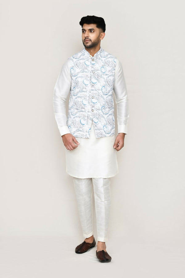 Joban Fashion White Colored Art Silk Fabric Kurta, Jacket With Straight Fit Pant