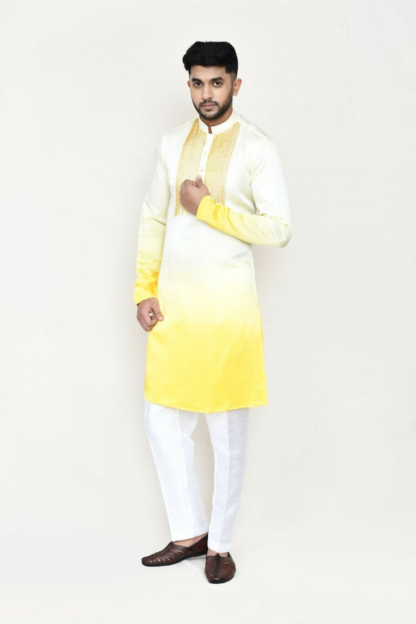 Joban Fashion Yellow Colored Satin Silk Fabric Kurta With Straight Fit Pant